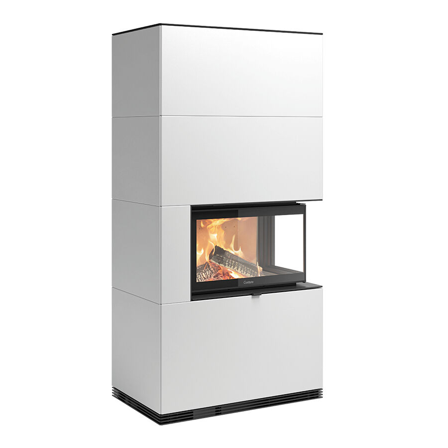 Il n’a jamais été aussi facile de s’occuper d’un brasier. La porte s’ouvre vers le haut et permet un meilleur accès au foyer. Habillage en Artstone blanc, tablette granit noir, porte relevale. Accueillant des bûches jusqu’à 50 cm de long, et pouvant recevoir un kit de masse d’accumulation POWERSTONE